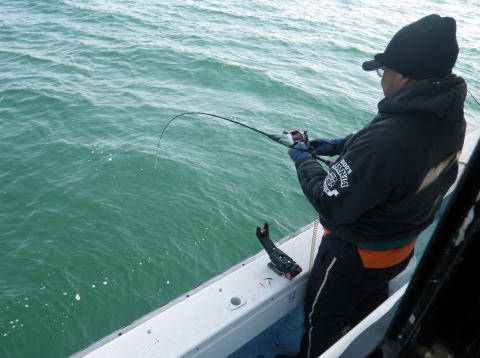 | 尚人丸初乗船及びメバル釣り初挑戦の西村様 追い食いの練習・・・練習・・・練習・・・ もう上げていいかな?→→→ ![]() 2013年 3月4日 |