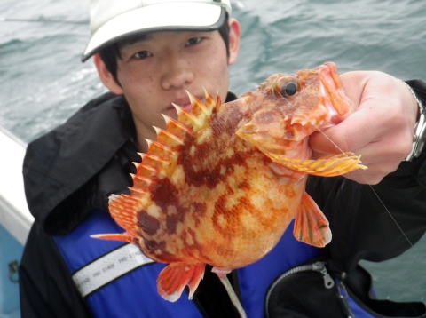 今日は遠征アラカブで出船予定でしたが 生憎の天気でメバル釣りに変更です。 今回はこんな天気の中、1人のキャンセルもなく ありがとうございました。 船長、超〜嬉しかったです。 お客様のお気持ちに感謝です。 さて、内容ですが、メバルは最大で30cm! 尚人丸初乗船の江口様がGET^^ アラカブの最大は水町様が釣られた尺オーバー! 釣られた本人もビックリされていました^^ こんなのがいるんだ〜っと・・・ 昨日から何故かアラカブが増えてきました。 そしてサイズがデカイです! あちこちまわってメバルの反応が魚探にバッチリ・・・ これは今日も貰ったね〜^^・・・しかし仕掛けを入れても エサに無反応・・・カブラにも・・・ 釣れるのはアラカブとアイナメばかり! たま〜に,こんな状況があります。{今日でした・・・} いつもはメバルの反応出て入れ食いするのですが 今日ばかりは渋かったです・・・ しかし良型メバルはしっかり釣られてます。 数は多くはないですが・・・ お客様はサイズが大型だから満足だよと 言ってもらえたのは救いでしたが・・・ 全員1人30匹オーバーを目標にしてるので 今日は申し訳なかったです。 次回リベンジお待ちしております。 今日乗船の皆さん雨の中ありがとうございました。 明日も頑張ります! |