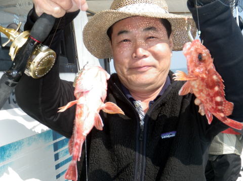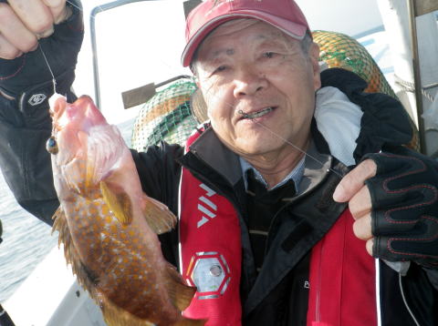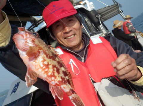 桜鯛出船です。 皆さんに頑張って最後まで巻き巻きして頂きました。 しかし鯛ラバがアララバになったり、アコラバ{アコウ}に なったりで本命の真鯛が見れません・・・ 釣れたのは内田様が釣られた真鯛1匹だけ・・・ お二人が釣られたアラカブやアコウは良型です! しかし、残念ながら真鯛は・・・ 皆さんのクーラーはアラカブばかりです。 せっかく来て頂いたのに申し訳ないです。 桜鯛は今回で終了します。 次回からの遠征は小潮周り中心の真鯛五目で 出船します。 25日からは去年同様、近場真鯛開始します。 遠征の半分の距離で着きますから少しは楽かな? 皆さん今日はありがとうございました。 尚人丸は出船した日は100%掲載します。 たとえ今回みたいに釣れなかった日も! |