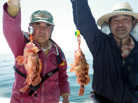 尚人丸初乗船の寺西様{お父さん} ジャンボキス、ダブル! ![]() 2013年 5月12日 |