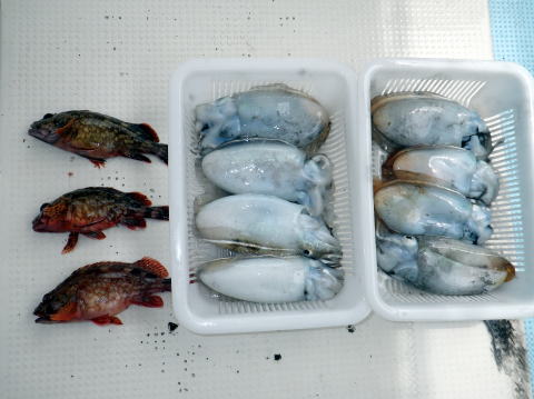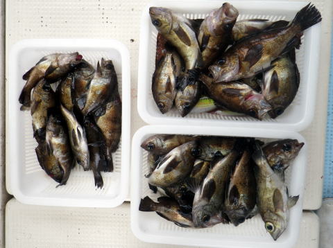 今日は尚人丸初乗船のお客様2名です。 八女からお越しの牛島様親子です。 通常は3名で島原方面に行くのですが 今回は2名ですので近場のポイントです。 そして、メバルとイカのリレーがご希望でした。 まずはメバルからです。 今日はリリースサイズは見事に1匹もいません! 中型が数匹で、あとはすべて良型サイズばかりです。 お客様もダブル、トリプルで良型メバル釣られ 凄く喜んでおられました。 3時間だけメバルを釣って後半はイカ釣りです。 イカは丸々としてドッシリしてます!デカイです。 お二人ともイカ釣りは初めてとの事^^で 凄く楽しんでおられました。 良かった〜 今日はお疲れ様でした。又遊びに来て下さいネ。 尚人丸ではイケスに入れられたメバルは 港に帰ってから、すべて活き〆してます。 美味しい刺身を食べてもらいたいから・・・ 今週平日は金曜{11日}に出船人数達したら メバル釣り出船します。宜しくお願い致します。 週末も空いてます。 |