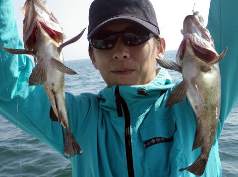 | 尚人丸初乗船の牛島様 良型ダブル〜 ![]() 2014年 4月8日 |