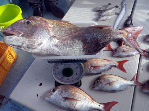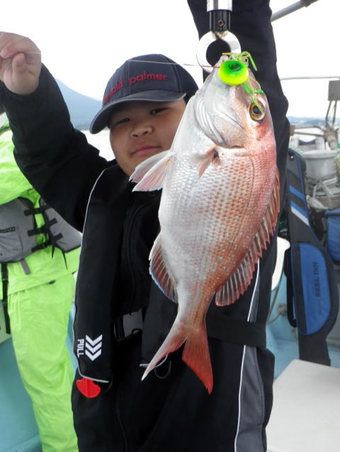 | 尚人丸初乗船及び有明海の鯛ラバ初挑戦の孝典君10歳 船中1発目〜 ![]() 2014年 11月2日 |