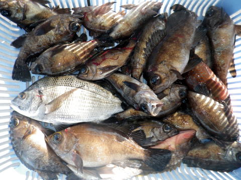 三連休2日目です。 昨日は出船人数達せず出船出来ません でしたが今日は出船しました。 今日も大鯛狙い! しかし前回みたいな入れ食いはなくて ボチボチ・・・合間があり又ボチボチ・・・ アラカブ{各自クーラー}も少なかったです。 今日はちょっと盛り上がりに欠けました。 皆さん今日はありがとうございました。 次回はメバル釣りで待っております^^ 明日も頑張ります。 明日は三連休最終日! 空席多数あります。 |