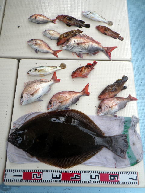 真鯛釣りです。 昨日はテンヤに分がありましたが 打って変わって今日はテンヤは不調・・・ 活きたエビに見向きもしません。 ですので鯛ラバに変更しました。 写真の真鯛、ヒラメはほとんど鯛ラバです。 日によって釣り方は変えた方が良いかも。 前回も長潮、若潮で良型ヒラメGETでしたが 今日も長潮で良型ヒラメGETです。 釣れた時間帯は下げ潮だけでした・・・ しかし、今日は真鯛が伸びませんでしたね〜 皆さんすいませんです。 またリベンジお待ちしております。 明日は時化予報なのでお休みします。 火曜日以降は凪になりそうです。 潮も中潮〜大潮で期待大です! 潮が大きい時は鯛ラバが面白いかも^^ もちろんテンヤも。 現在5日は出船確定してます。 お一人でも乗船OKです。 |