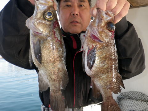 メバル釣り開始前の調査出船! 協力者2名です。 |