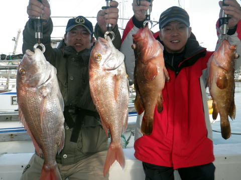 原様ご兄弟^^ すべて鯛ラバにて 真鯛は3キロ頭、アコウは1,5キロ頭 ![]() 2014年 11月16日 |