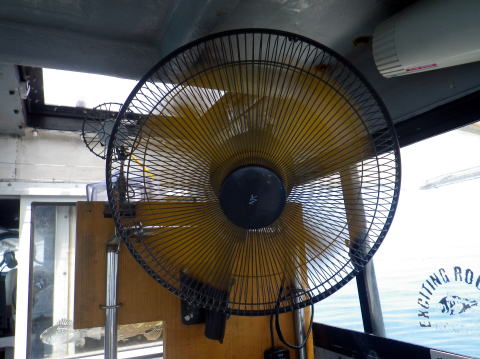 ![]() 2015年 8月1日 外付けの工業用大型扇風機 意外と役にたってます^^ 台座は船長手作り・・・ |